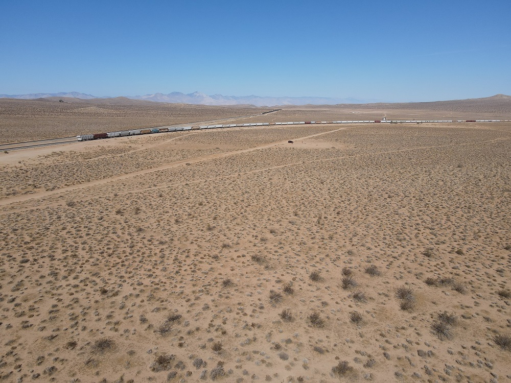 Trains were my primary attention on this flight. Actually, there wasn’t much more out there to film. You just don’t think of trains parked in an isolated desert area. I made a low altitude flight right over the cars then came back for a side view video. People think of dirt, rocks, snakes, lizards and many others in the desert, not trains. The trains added a different aspect to the desert which caught my eye.