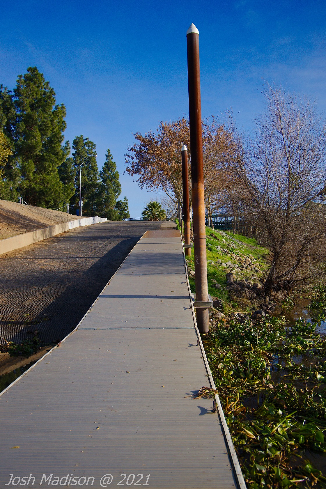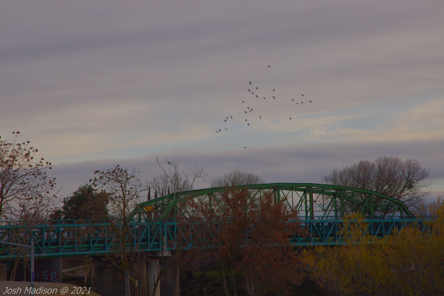 The Mossdale Railroad Bridge high towers are clearly visible from the 5 freeway as you cross the San Joaquin River. It is located on the north side of the 5 freeway. The bridge can be accessed via Stewart Rd. on the west or the Mossdale Crossing Regional Park on the east of the river. If you visit via the park you will need to pay an entrance fee per vehicle.
