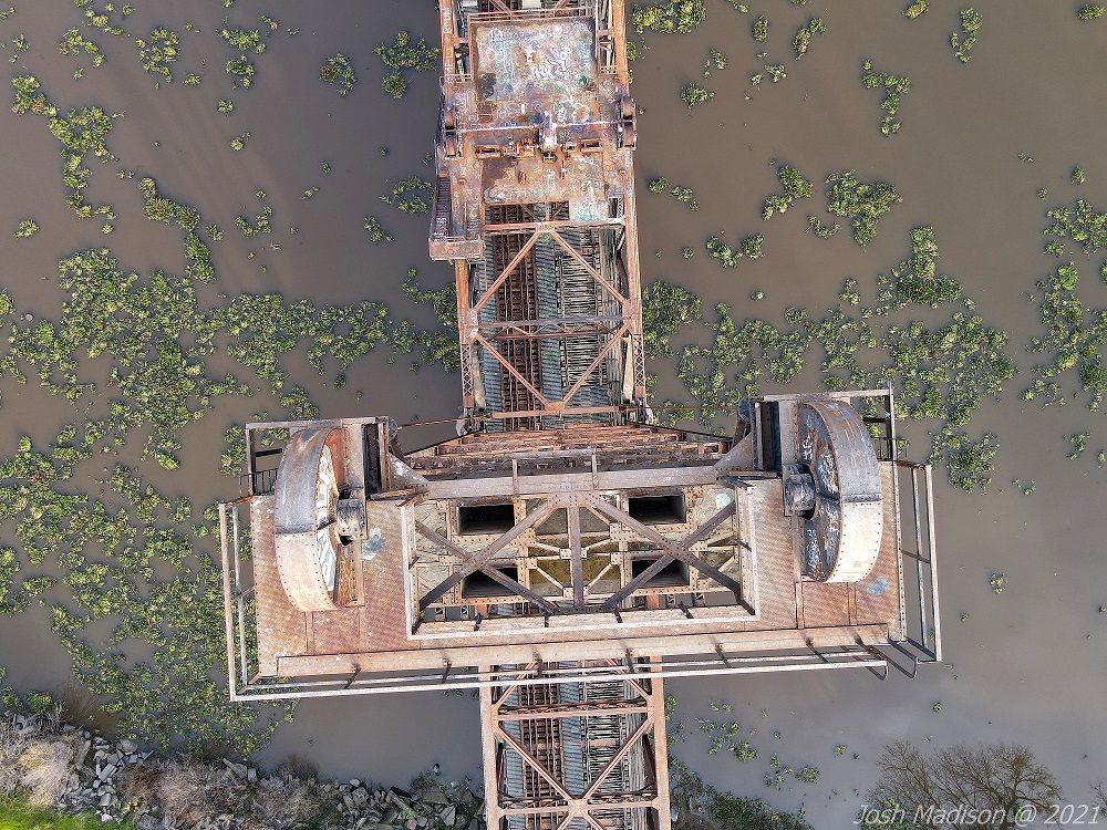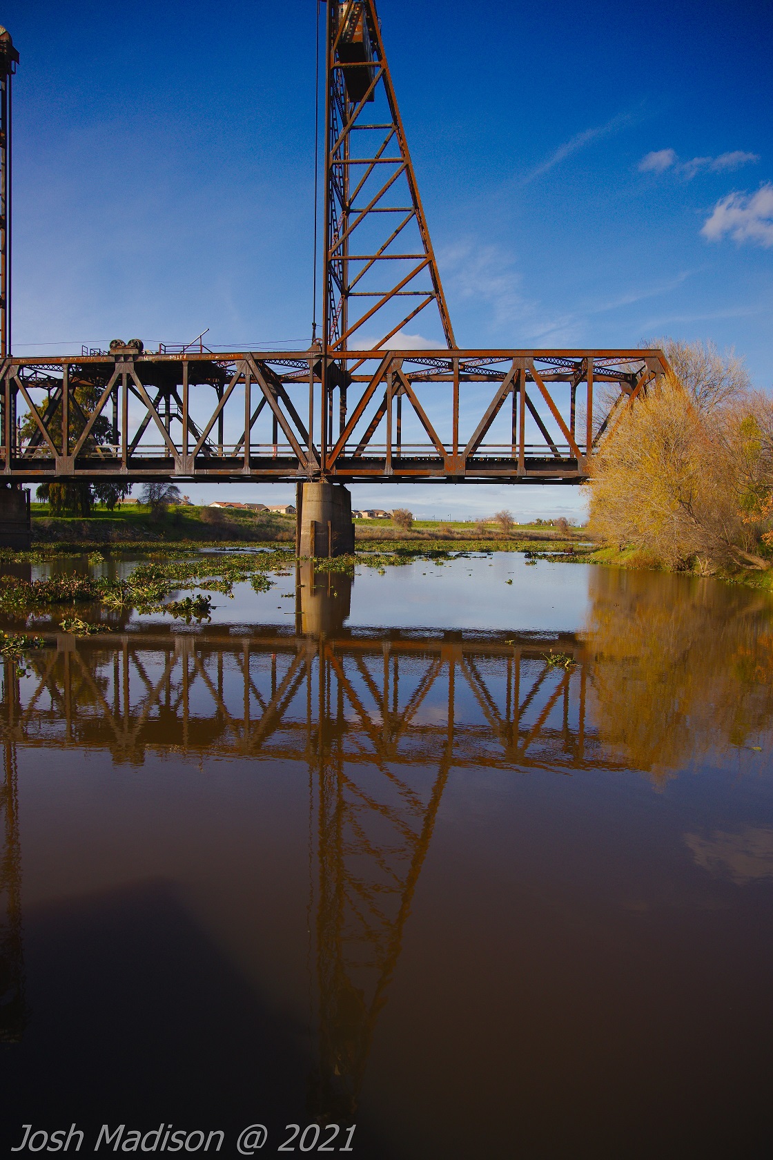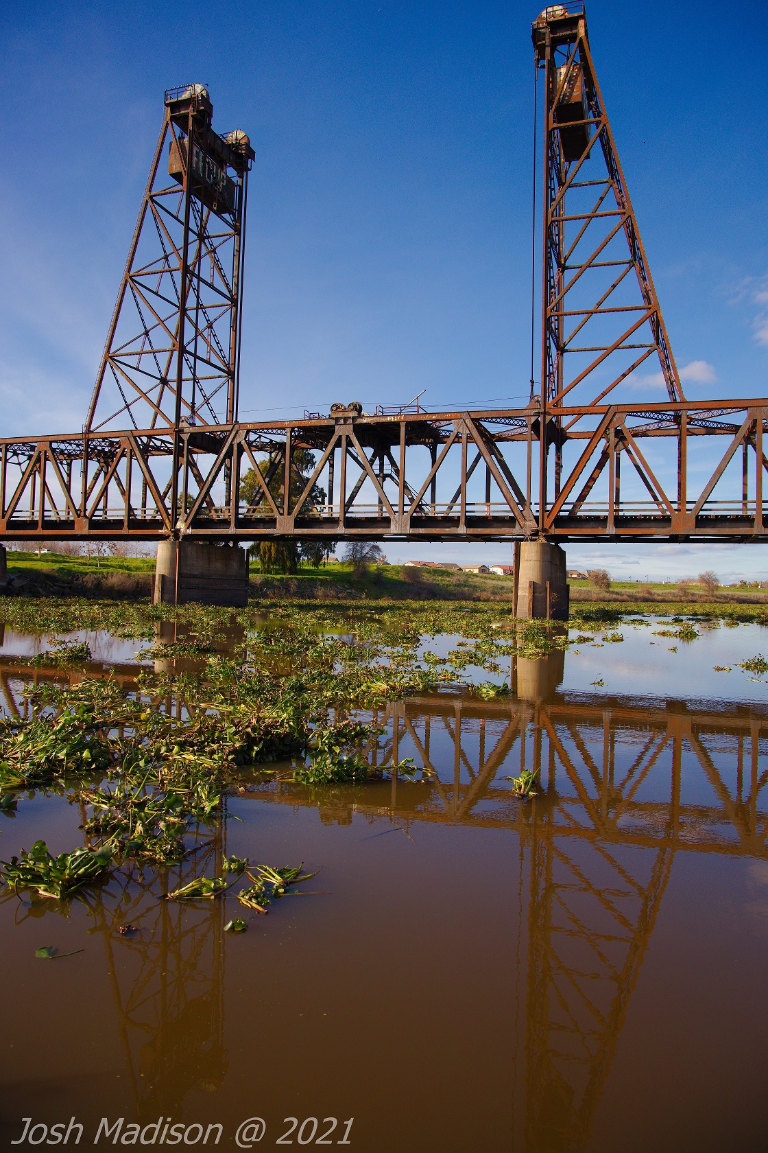 The Mossdale Railroad Bridge is a vertical lift draw bridge over the San Joaquin River near Lathrop, CA. It opened September 8, 1869 establishing itself as the last link in the transcontinental railroad. This was the last link allowing train travel from the Atlantic to the Pacific.
