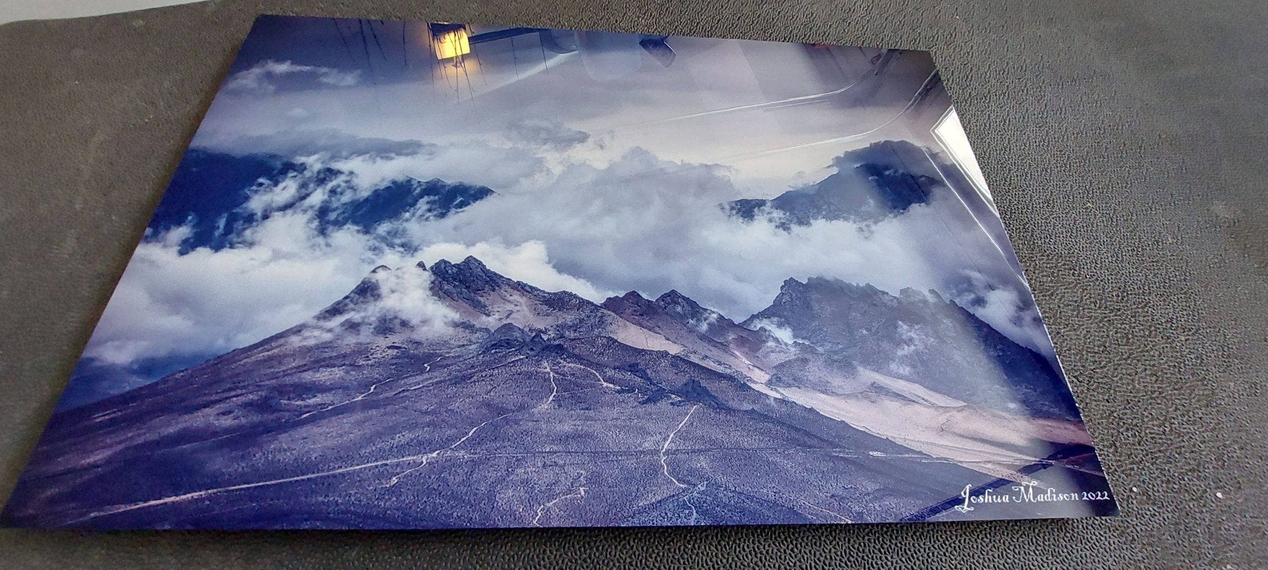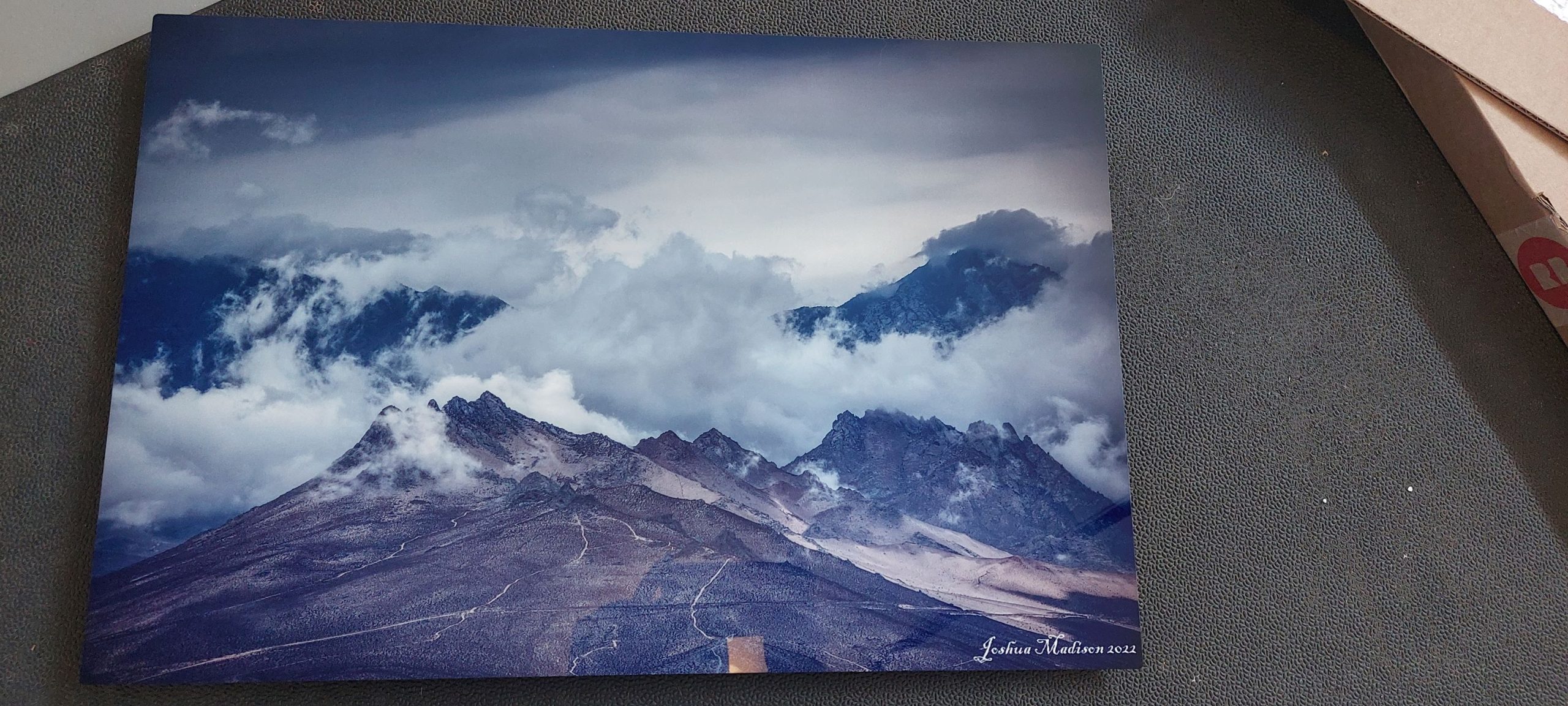 I purchased my first product from my Redbubble store recently. Three photos caught my attention the most recently for my first purchase from my store. Do you remember the article I added last week Clouds Cover Desert Mountains? I chose my Clouds Above & Behind Five Fingers Peaks metal print size 24×16. I was really happy with the depth and details of this photo.
