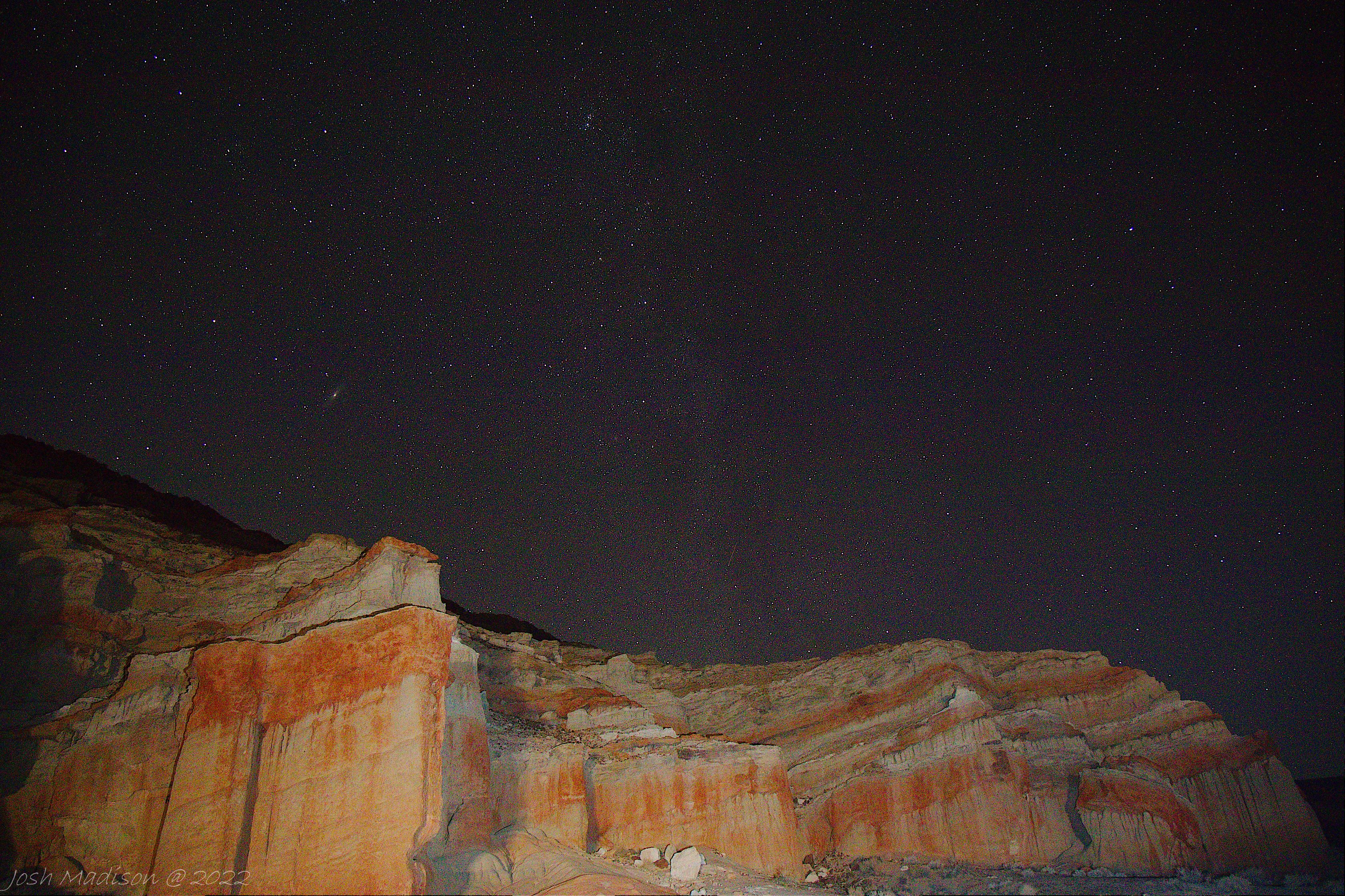 Last night I went out and took many great photos at Red Rock Canyon State Park. We were playing around with different lighting settings using flashers on the rock formations. The two photos below were a couple of my favorites. Do you like the left or right photo better? Let me know in the comments below.
