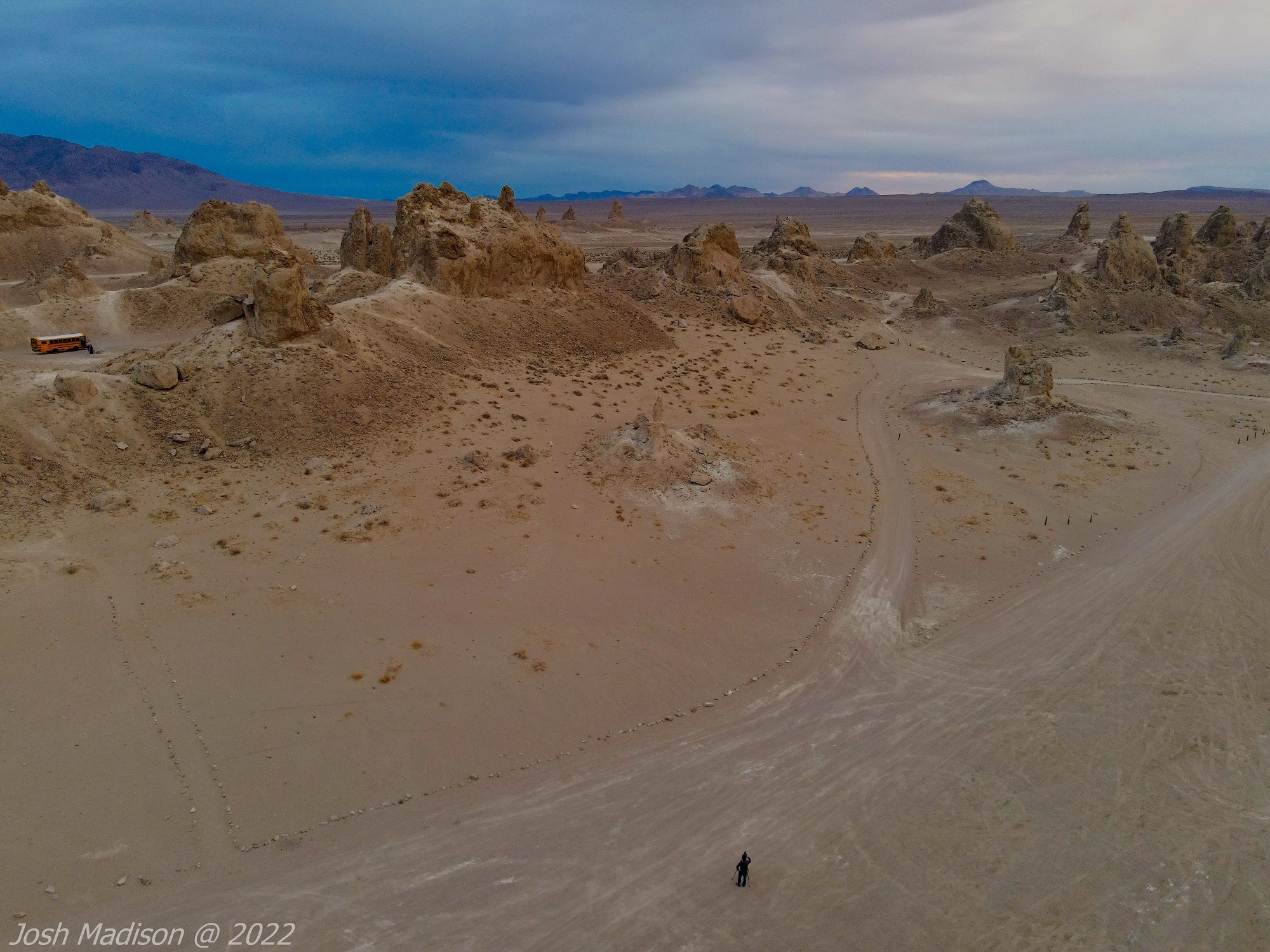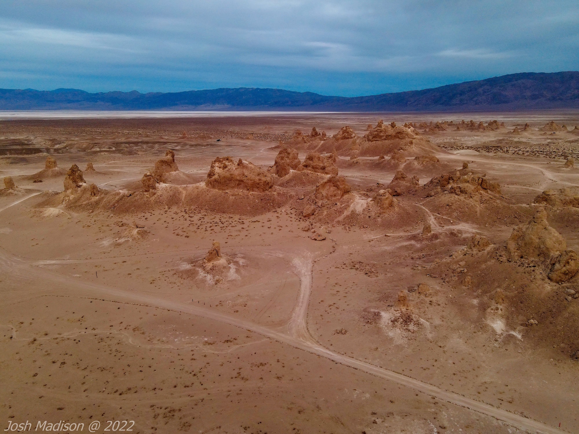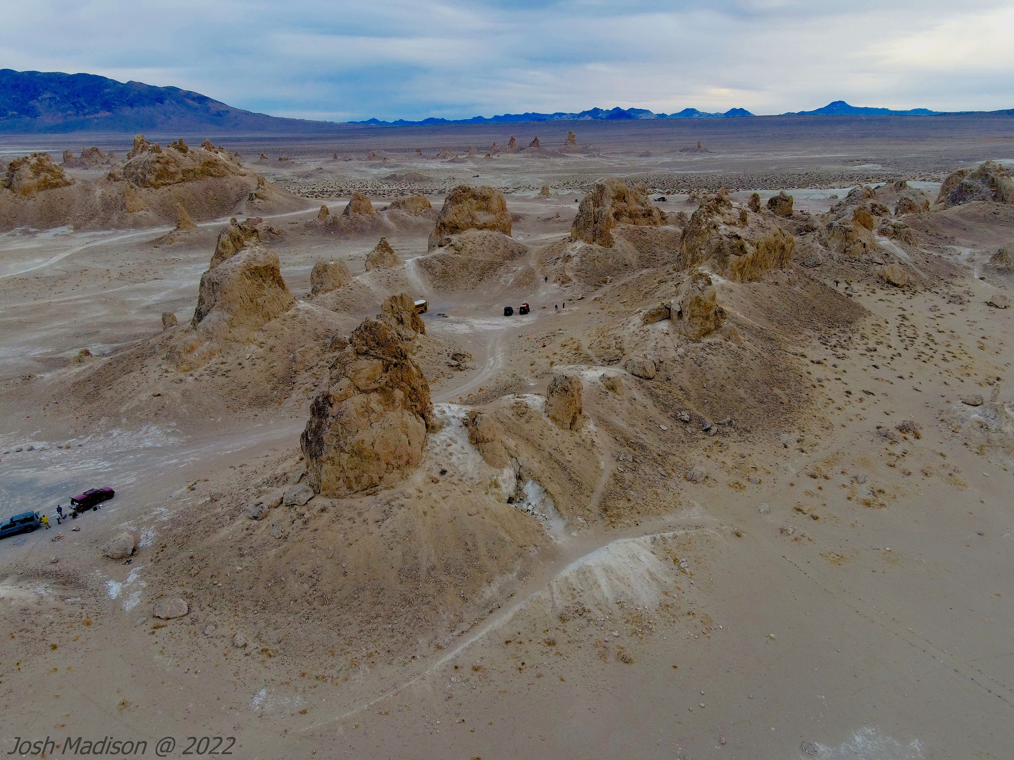 The weather finally produced mostly cloudy skies Saturday offering a good photo/video opportunity. The Trona Pinnacles consists of a large number of tufa spires rising out of the Searles Lake Basin. Visitors come here from all over to see these towering natural structures protruding from the ground. This is a great place to hike, camp, photograph and just take in the scenic views.
