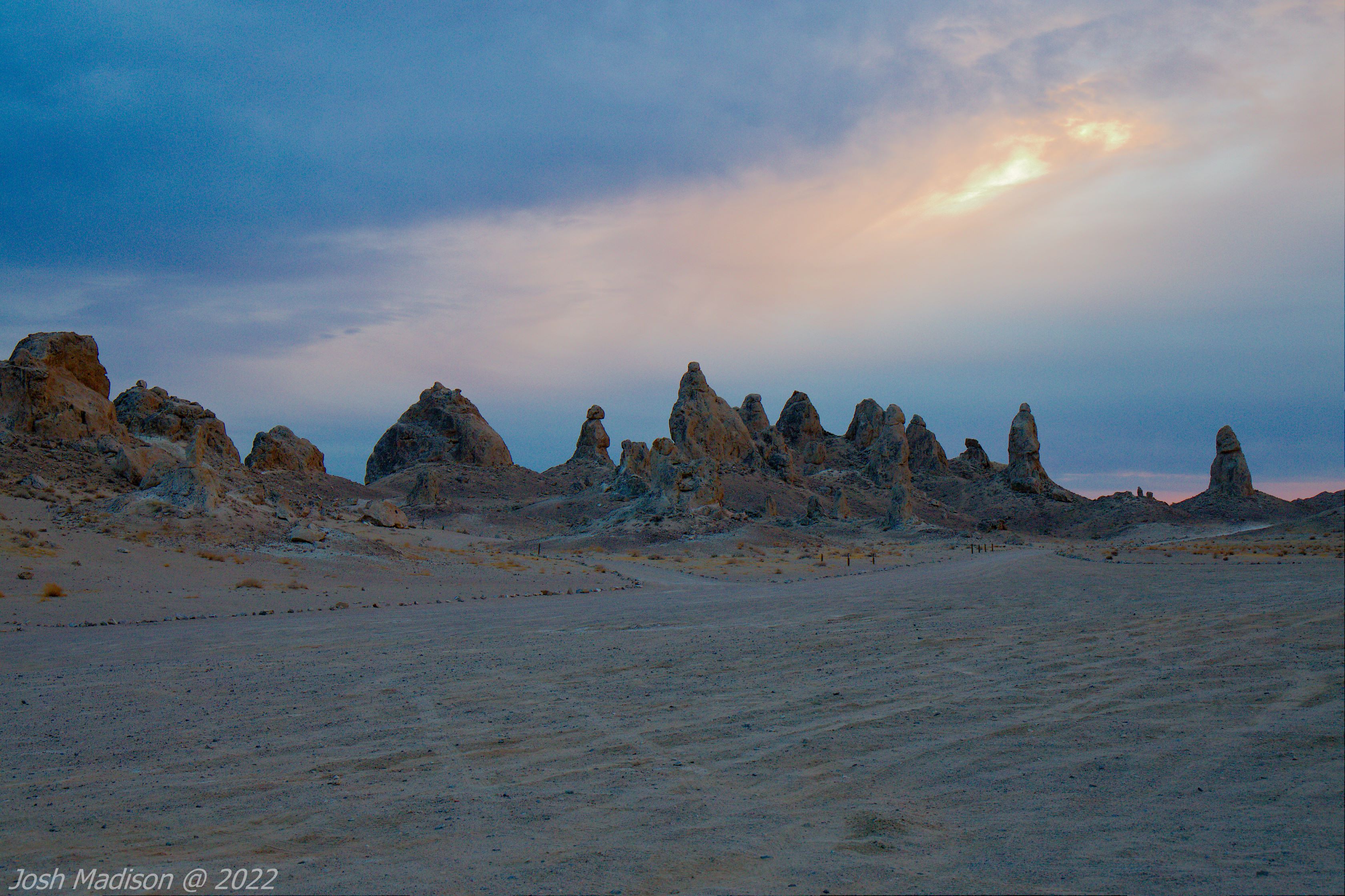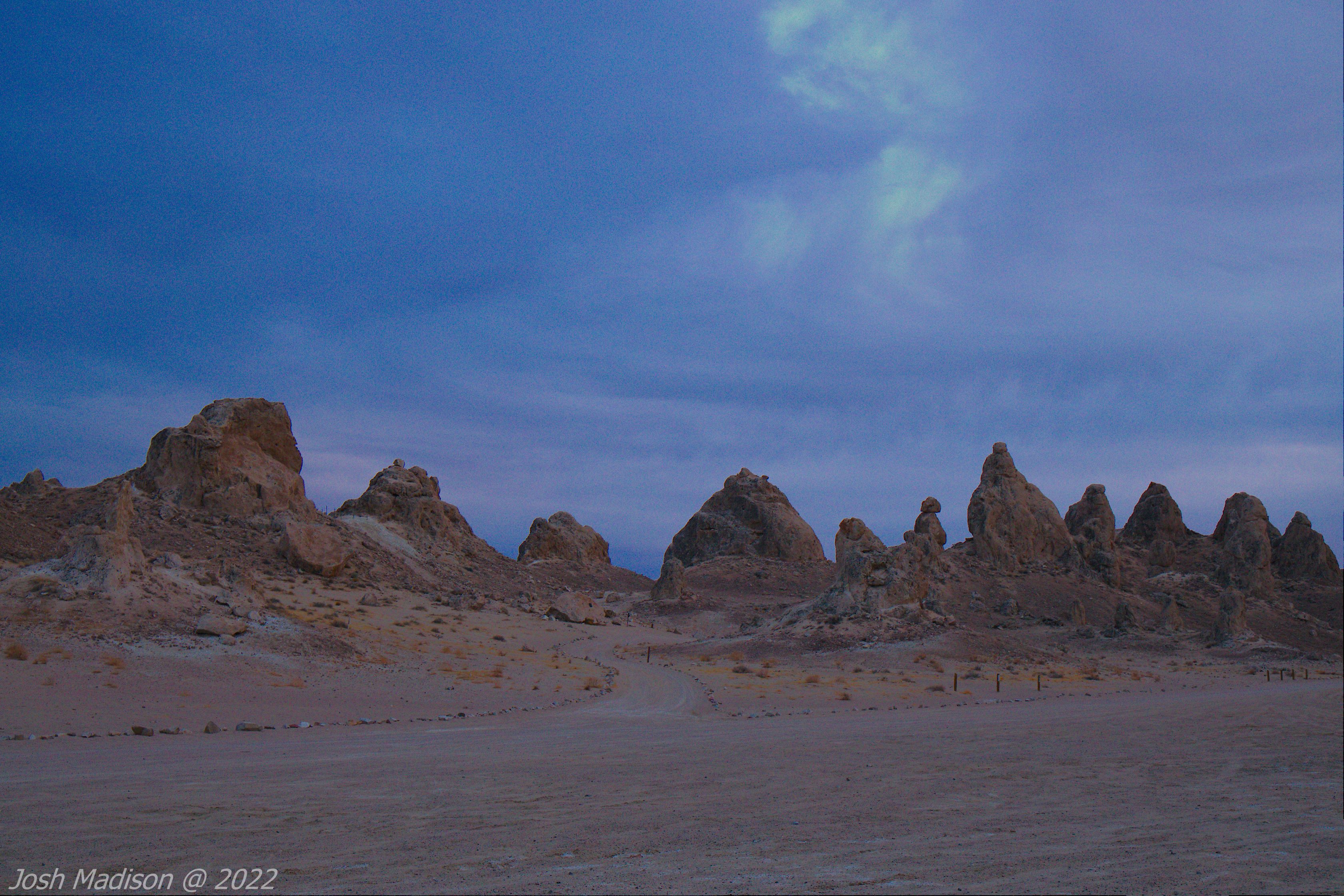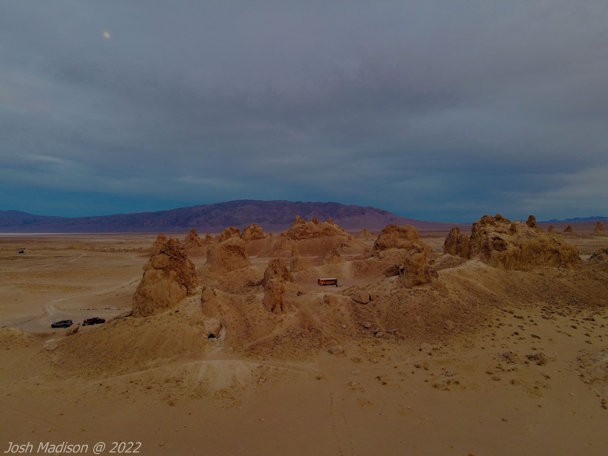 The weather finally produced mostly cloudy skies Saturday offering a good photo/video opportunity. The Trona Pinnacles consists of a large number of tufa spires rising out of the Searles Lake Basin. Visitors come here from all over to see these towering natural structures protruding from the ground. This is a great place to hike, camp, photograph and just take in the scenic views.